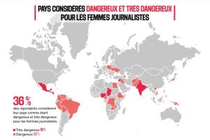 En 2021, Reporters Sans Frontières a publié un enquête intitulée « Le journalisme face au sexisme », dans laquelle elle dévoile que le double risque auquel sont confrontées de nombreuses femmes journalistes est une réalité trop répandue, non seulement sur les terrains de reportage classiques comme sur les nouveaux terrains virtuels, sur internet, mais aussi là où elles devraient être à l’abri, dans leur rédaction.